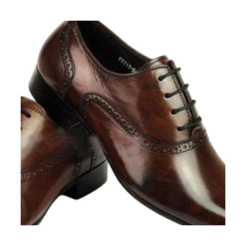 Acuto — Men’s Dark Brown High-Shine Leather Pointed-Toe Medallion Brogue Lace-Up Oxford Formal Dress Shoes with Leather Sole