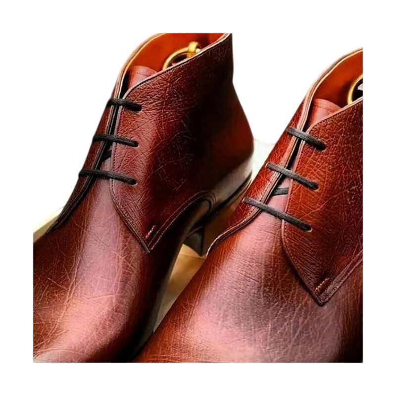 Valentino — Men’s Cognac Burgundy Hand-Patina Leather Square-Toe Lace-Up Chukka Dress Boots
