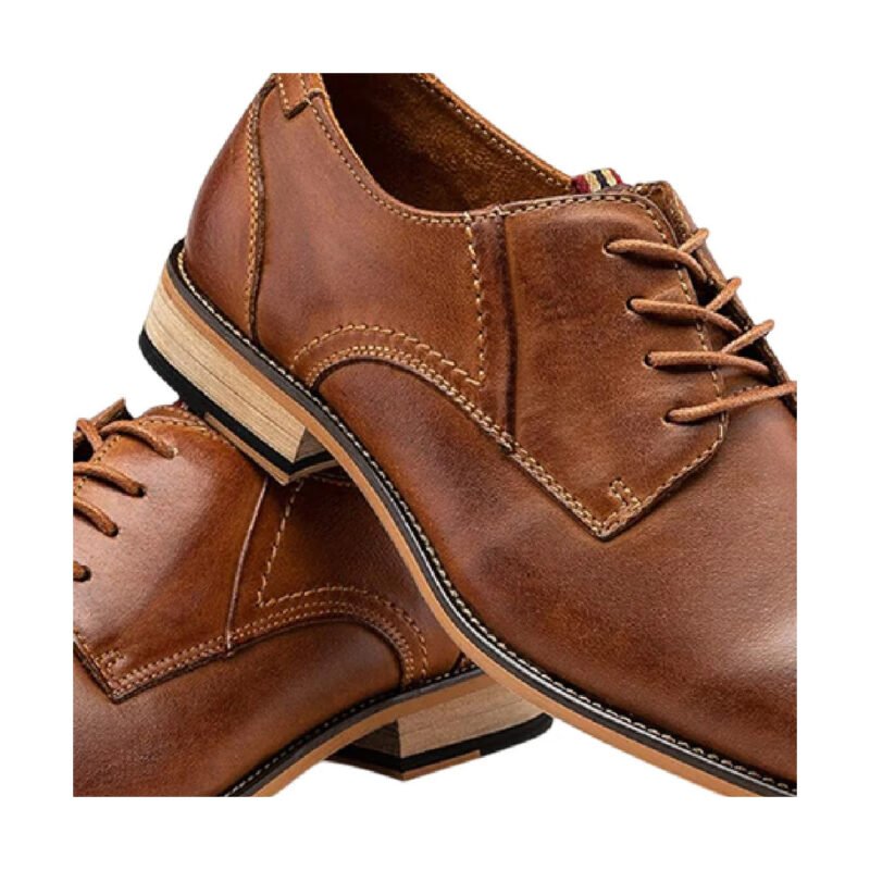 Alessandro — Men’s Tan Cognac Leather Plain-Toe Lace-Up Derby Casual Dress Shoes with Leather Sole