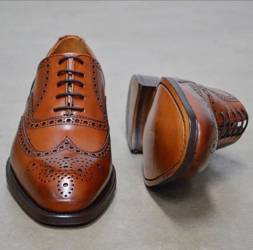 Ambra — Men’s Mustard Yellow Genuine Leather Wingtip Full Brogue Oxford Lace-Up Smart Casual Dress Shoes with Leather Sole