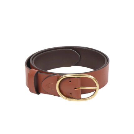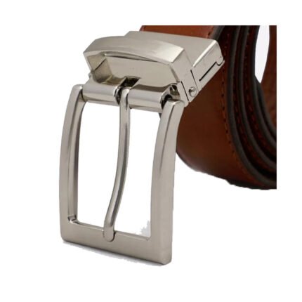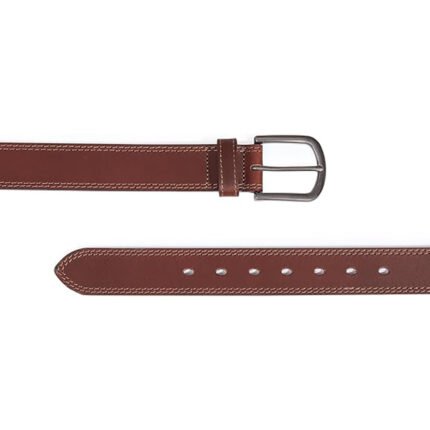 Rugavello — Men’s Rich Dark Chocolate Brown Genuine Leather Double-Stitch Edge Antique Silver-Buckle Casual Work Belt