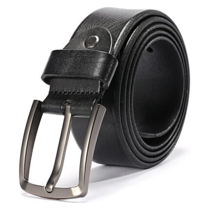 Nerovante — Men’s Bold Jet Black Genuine Leather Full-Grain Single-Stitch Gunmetal Prong-Buckle Heavy-Duty Casual Belt
