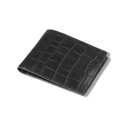 Caimanazzo — Men’s Jet Black Genuine Crocodile-Embossed Leather Ultra-Slim Classic Bifold Card Wallet