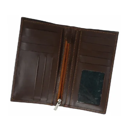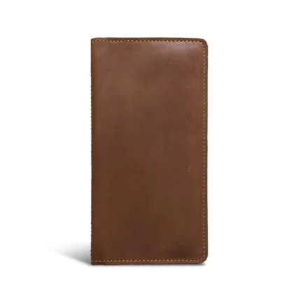 Cavallozzo — Men’s Warm Havana Brown Genuine Horween-Style Leather Saddle Stitch Slim Long Bifold Clutch Wallet
