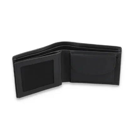 Lineazzo — Men’s Jet Black Genuine Smooth Leather Red Stripe Accent Bifold Slim Card Wallet