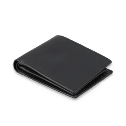 Minimazzo — Men’s Jet Black Genuine Polished Smooth Leather Ultra-Slim Minimalist Bifold Card Wallet