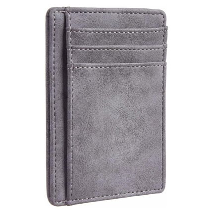 Grisello — Men’s Vintage Slate Grey Genuine Leather Textured Multi-Slot Front-Pocket Slim Minimalist Card Holder Wallet