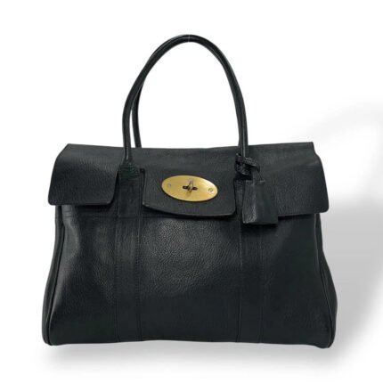Classicazza — Women’s Jet Black Genuine Pebbled Leather Gold-Tone Buckle Top Handle Bayswater Tote Handbag