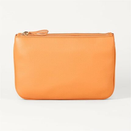 Solvetta — Women’s Bright Tangerine Orange Smooth Genuine Leather Top-Zip Wide-Flat-Strap Hardware-Free Minimalist Chic Crossbody Bag