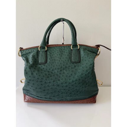 Struzzo — Women’s Forest Green & Tan Genuine Ostrich-Embossed Leather Top Handle Tote Handbag