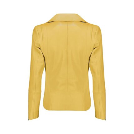 Solenzo — Women’s Vivid Canary Yellow Genuine Leather Wide-Lapel Multi-Zip Peplum-Cut Fashion Moto Jacket