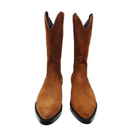 Rancho — Men’s Cognac Tan Genuine Suede Pointed-Toe Western Cowboy Pull-On Mid-Calf Boots with Leather Sole