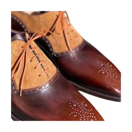 Imperavio — Men’s Two-Tone Cognac Suede & Burgundy Leather Cap-Toe Brogue Lace-Up Ankle Boot Smart