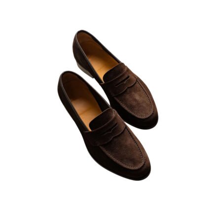 Lawson — Men’s Dark Chocolate Brown Suede Penny Loafer Slip-On Smart Casual Dress Shoes with Leather Sole