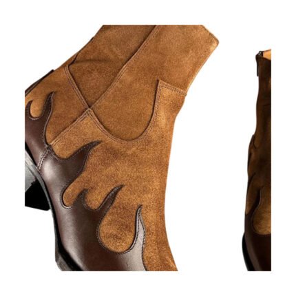 Maverick — Men’s Two-Tone Tan Suede & Dark Brown Leather Flame Western Cowboy Ankle Boots with Leather Sole