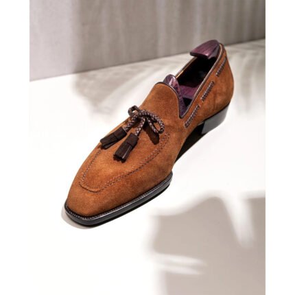 Nappino — Men’s Cognac Tan Genuine Suede Tassel Loafer Slip-On Smart Casual Dress Shoes with Leather Sole