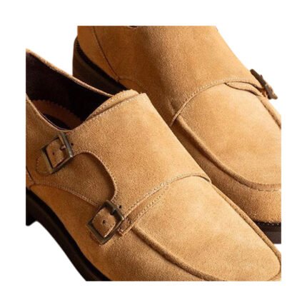 Monty — Men’s Camel Beige Genuine Suede Double Monk Strap Loafer Smart Casual Dress Shoes with Leather Sole