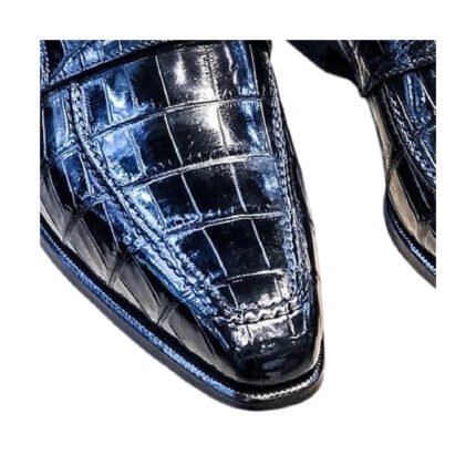 Nilo — Men’s Royal Blue Genuine Crocodile Embossed Leather Wholecut Oxford Lace-Up Formal Dress Shoes with Leather Sole