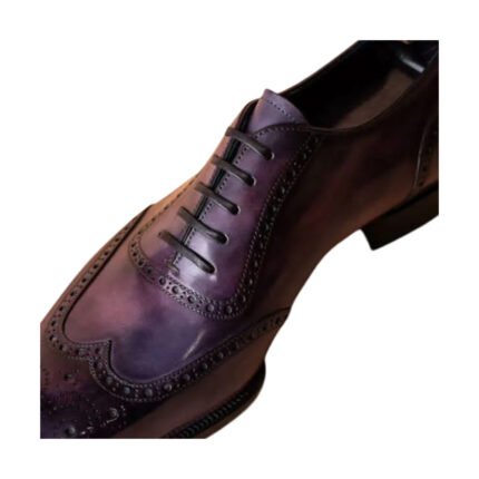 Viola — Men’s Deep Purple Plum Hand-Patina Leather Wingtip Full-Brogue Square-Toe Lace-Up Oxford Luxury Dress Shoes”