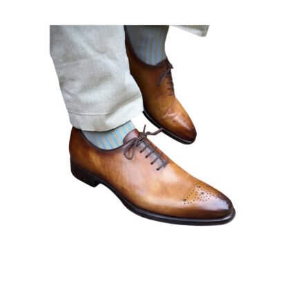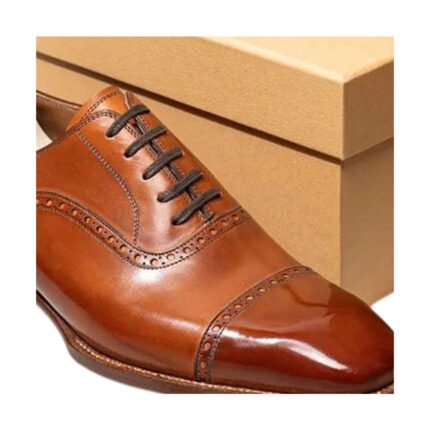 clifton — men’s tan brown genuine leather cap-toe oxford brogue lace-up formal dress shoes with leather sole like that name and title