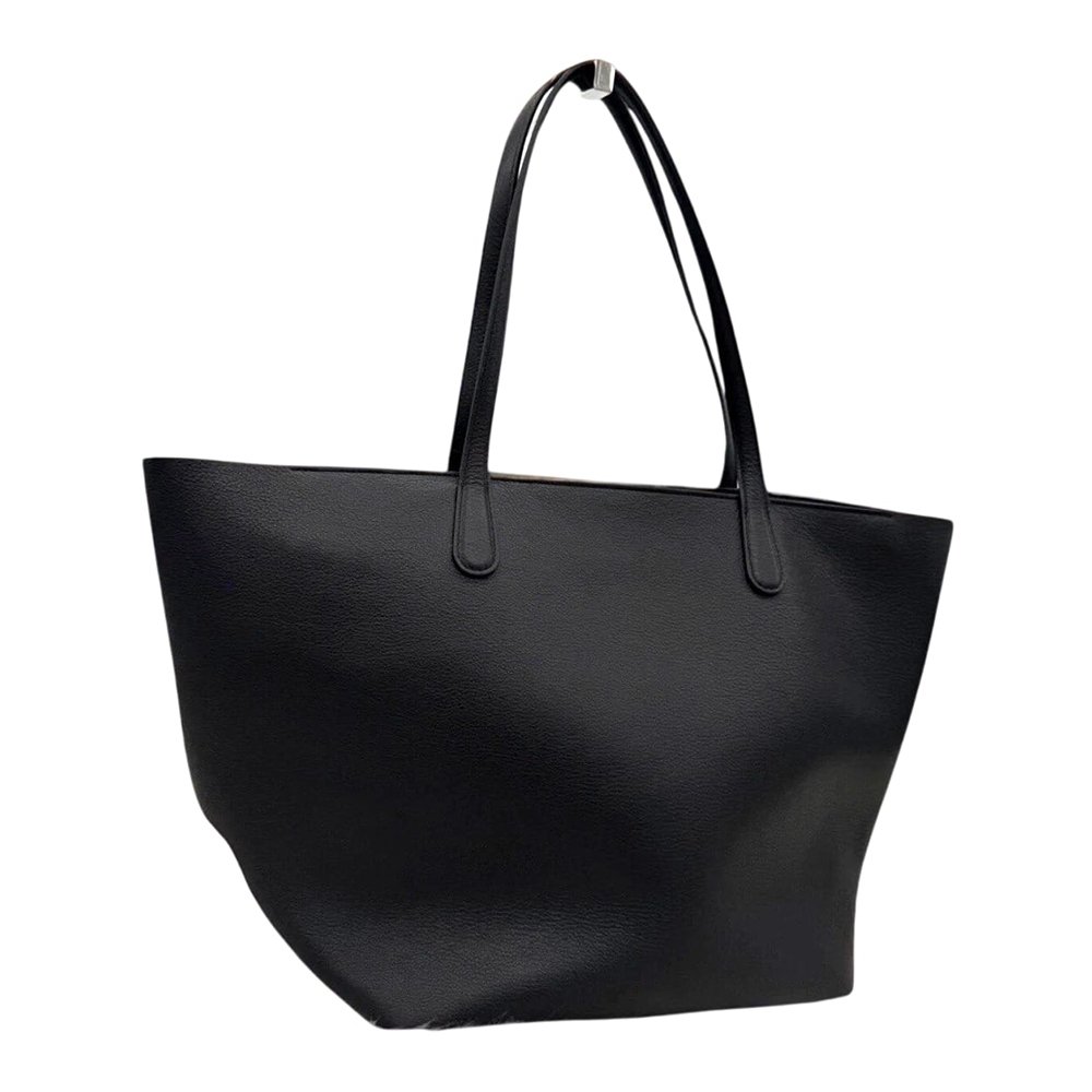 Noirezza — Women’s Jet Black Genuine Smooth Leather Structured Open Top Shoulder Tote Handbag