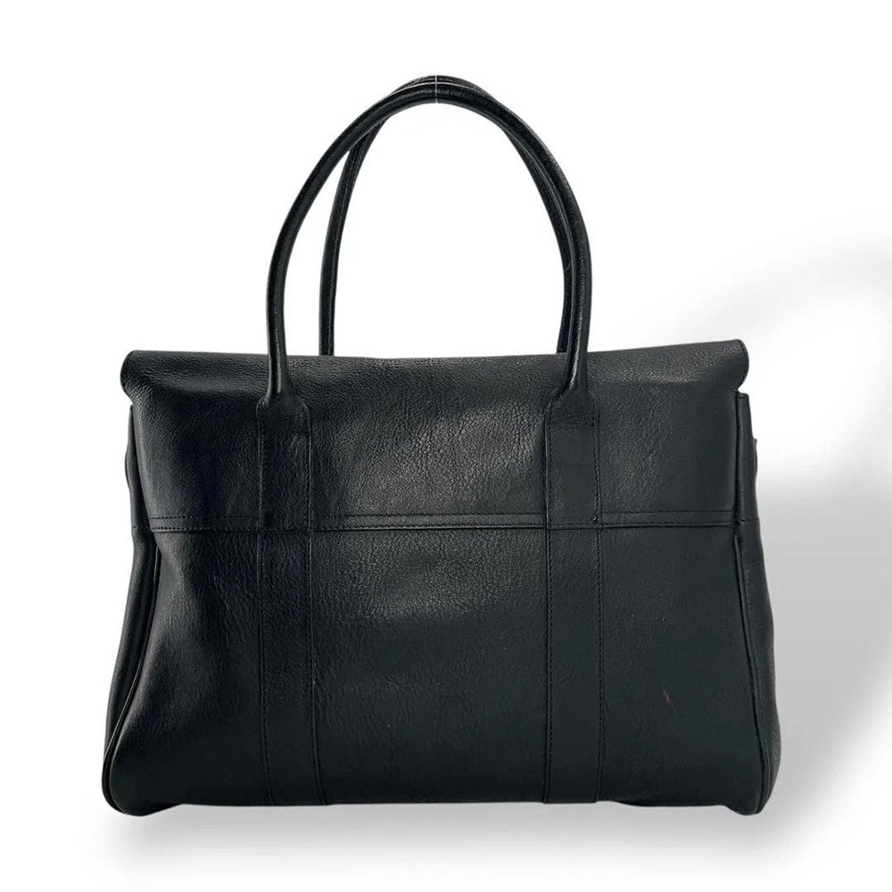 Classicazza — Women’s Jet Black Genuine Pebbled Leather Gold-Tone Buckle Top Handle Bayswater Tote Handbag