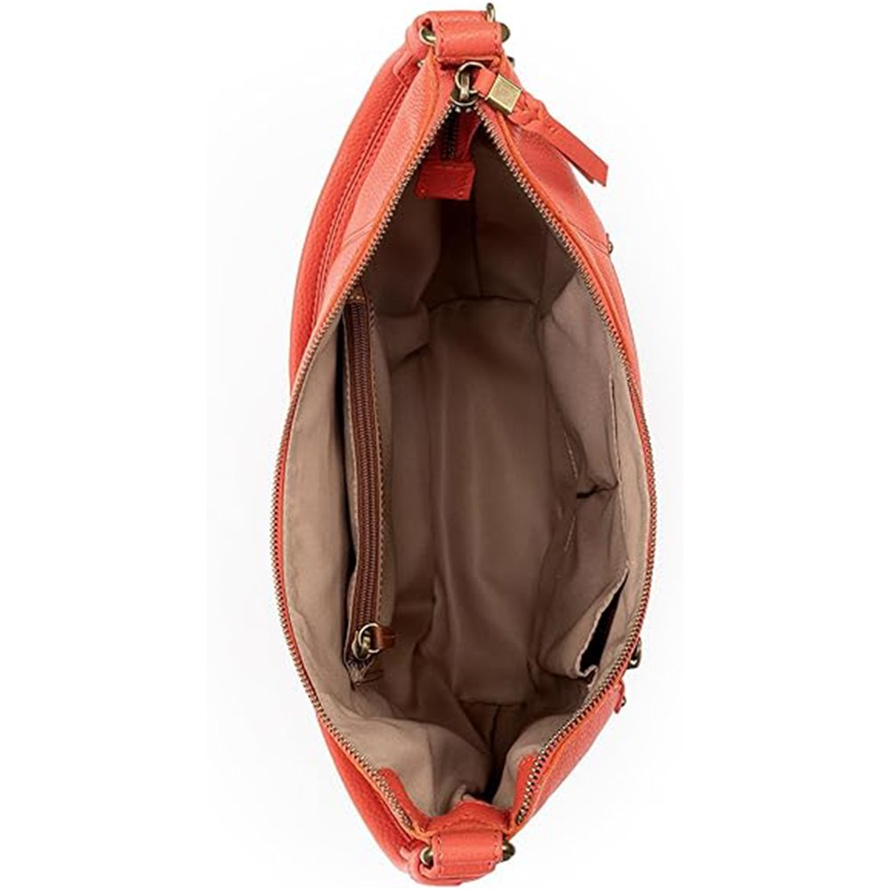 Corvella — Women’s Vibrant Coral Red Genuine Leather Front-Zip Pocket Antique-Brass Hardware Tassel-Pull Casual Hobo Shoulder Bag