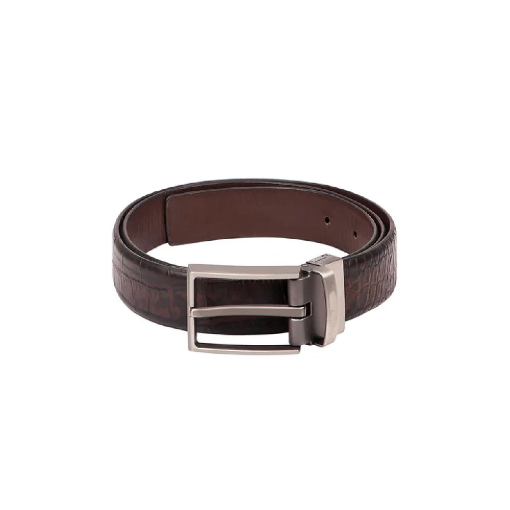 Croco Lusso — Men’s Dark Espresso Brown Genuine Embossed Crocodile Texture Leather Reversible Formal Dress Belt with Gunmetal Silver-Tone Rotating Pin Buckle Classic Business Accessory