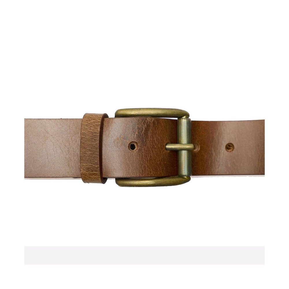 Rustico — Men’s Chestnut Tan Genuine Thick Full-Grain Leather Casual Rugged Belt with Antique Brass-Tone Heavy-Duty Square Pin Buckle Vintage Western Everyday Durable Accessory