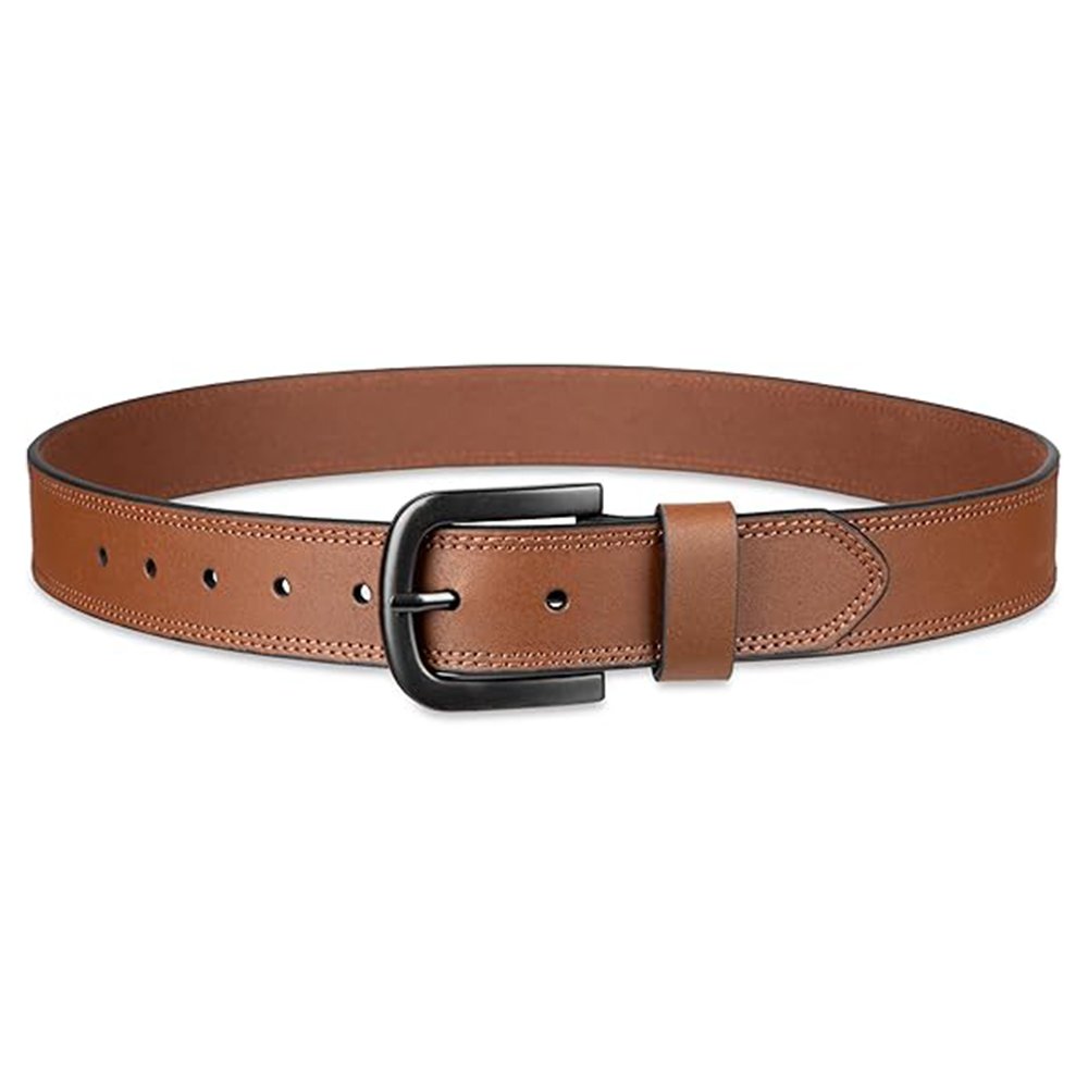 Tolvbex — Men’s Warm Caramel Tan Genuine Leather Matte-Black Pin-Buckle Border-Edge Stitched Rugged Smart-Casual Heritage Belt