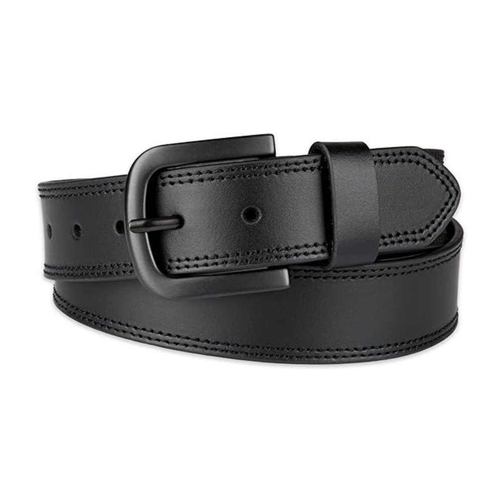 Zolvdex — Men’s Jet Black Genuine Leather Matte-Black Pin-Buckle Double-Border Edge Bold Casual Smart Everyday Heritage Belt