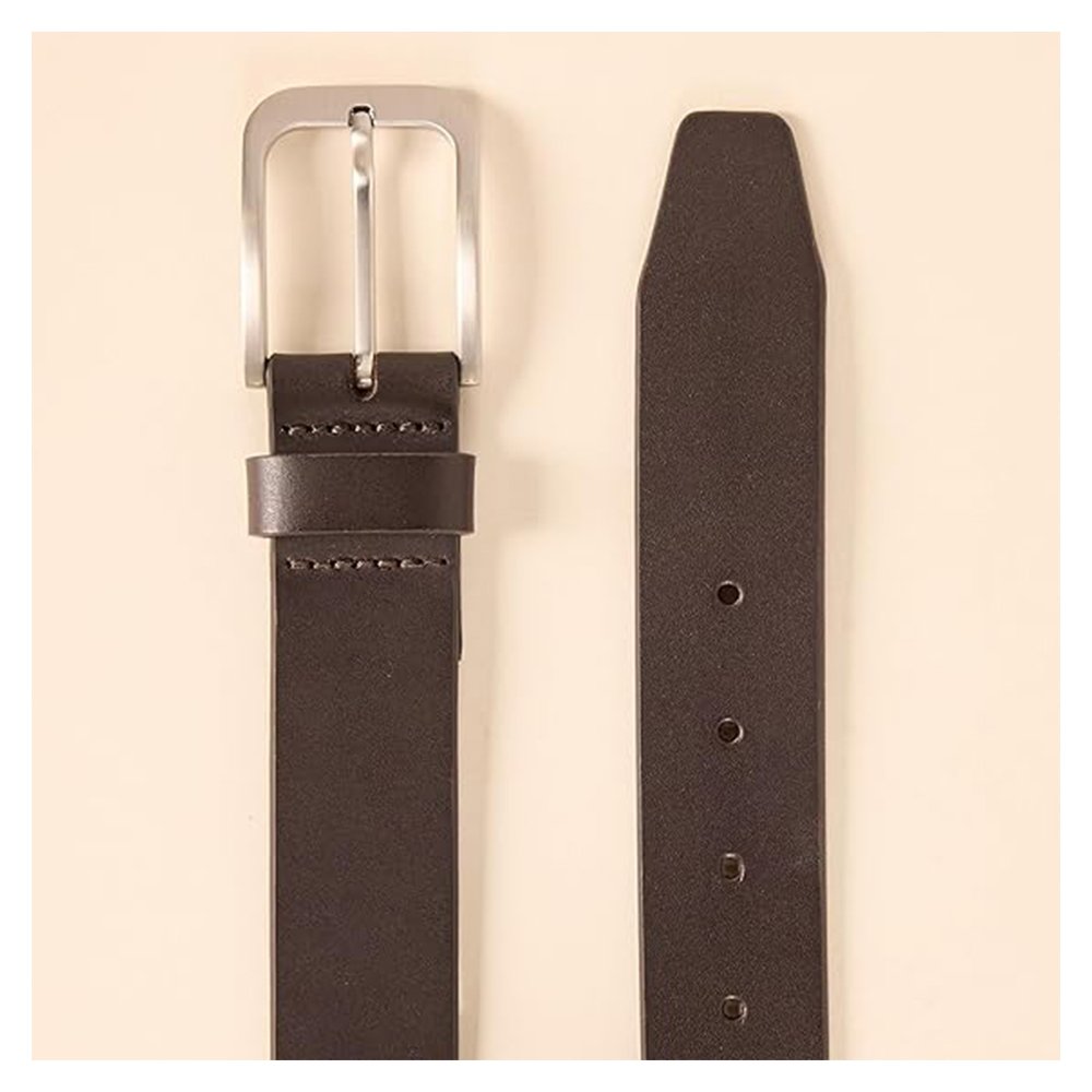 Cinturro — Men’s Deep Espresso Brown Genuine Leather Smooth-Finish Centre-Stitch Brushed Gold-Buckle Smart Dress Belt