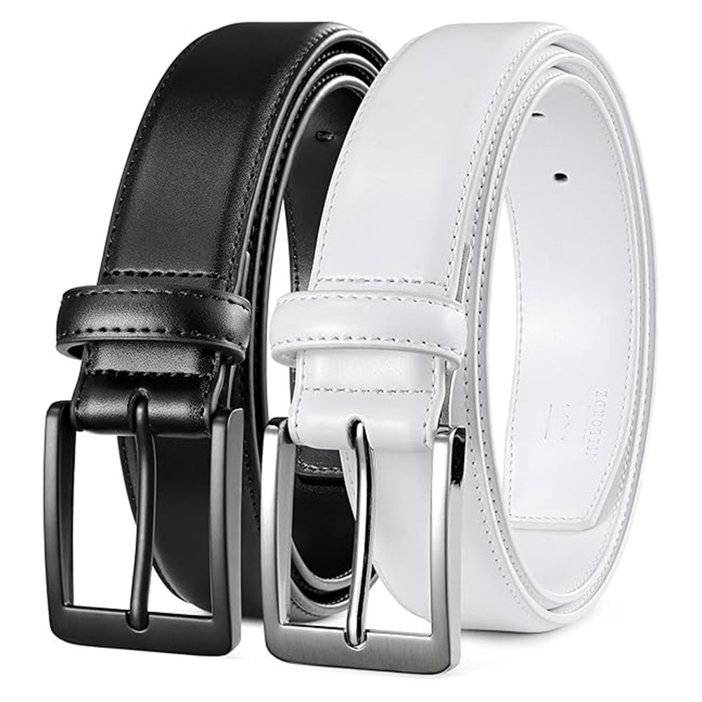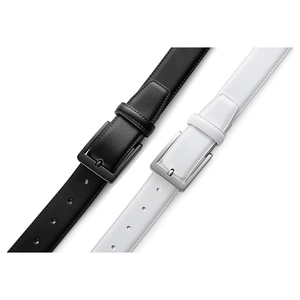 Bieltoro — Men’s Classic Black & White Genuine Leather Smooth-Finish Single-Stitch Gunmetal-Buckle Reversible Dual-Pack Dress Belt