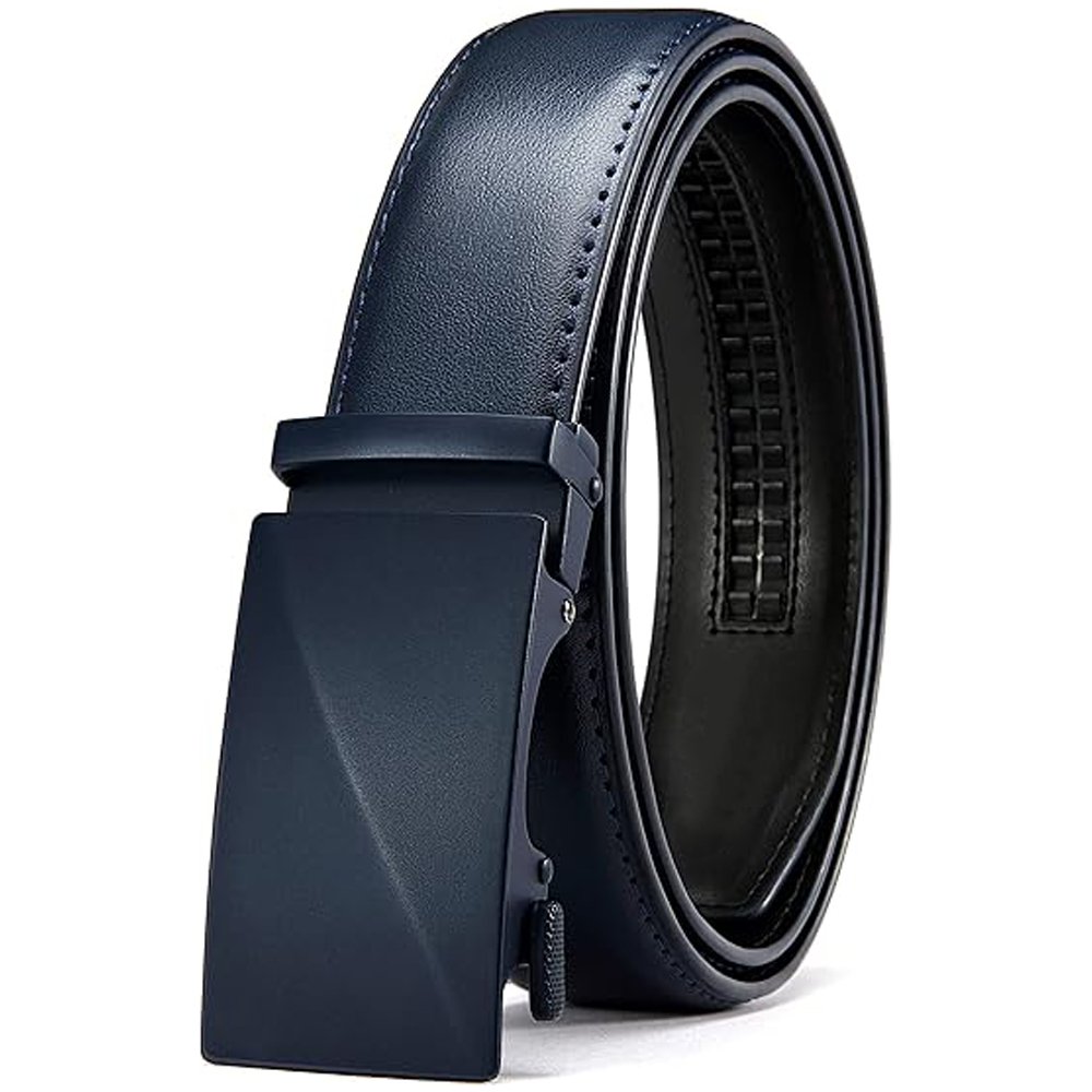 Naveltro — Men’s Deep Navy Blue Genuine Leather Automatic Ratchet Sliding-Buckle Trim-Edge Executive Business Belt