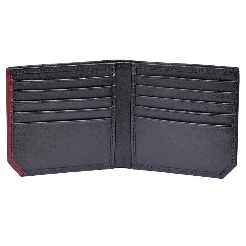 Duoazzo — Men’s Two-Tone Midnight Black & Burgundy Genuine Smooth Leather Bifold Card Wallet