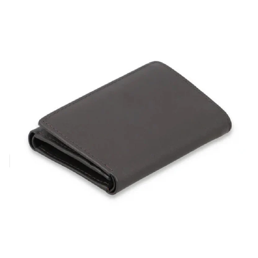 Grigio Sottile — Men’s Dark Charcoal Graphite Grey Genuine Smooth Full-Grain Leather Ultra-Slim Compact Bifold Wallet Clean Minimal Edge Stitch Soft Rounded Corner Slim Profile Classic Minimalist Everyday Carry Card Cash Pocket Wallet