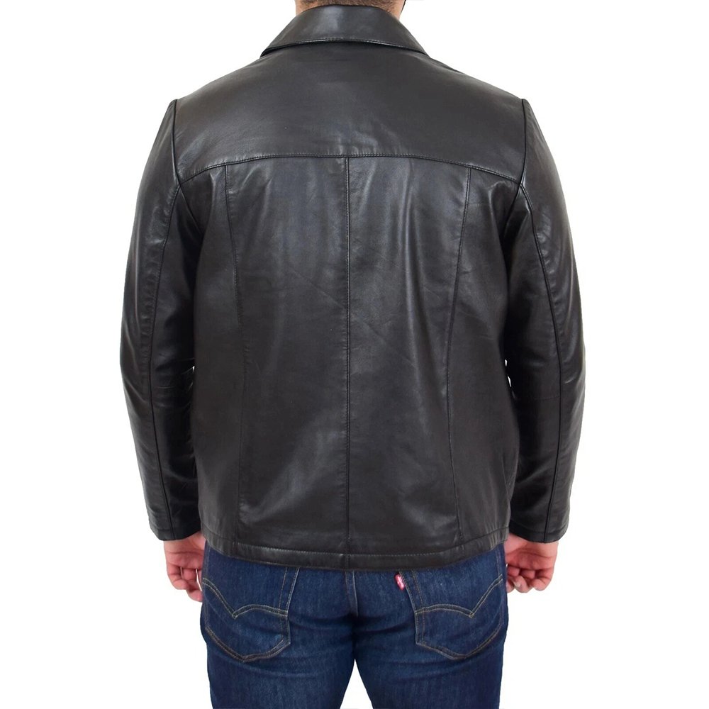 Dornvex — Men’s Jet Black Genuine Soft Lambskin Leather Point-Collar Box-Cut Relaxed-Fit Clean Front-Zip Side-Pocket Timeless Classic Jacket