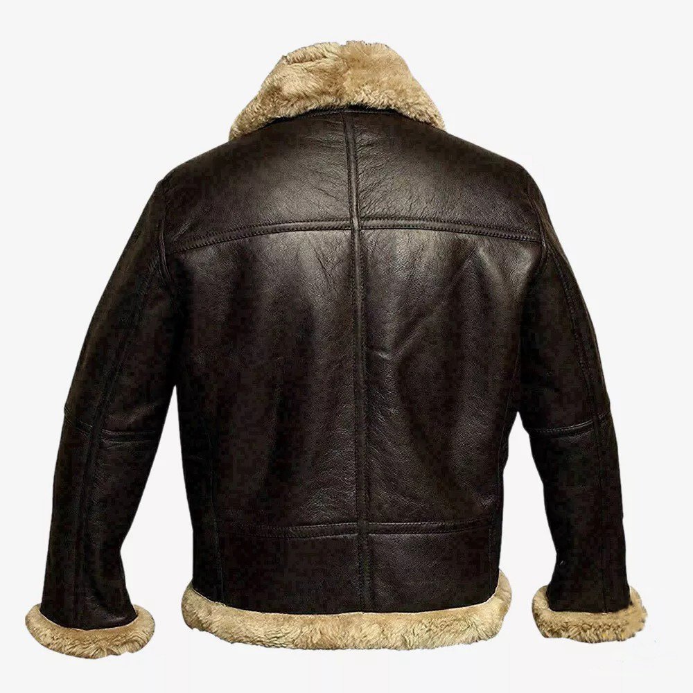Aquilone — Men’s Dark Espresso Brown Genuine Cowhide Leather Oversized B3 Bomber Aviator Flight Jacket with Cream Beige Thick Sherpa Shearling Fur Collar Cuffs Lining Belted Warm Winter Military Outerwear