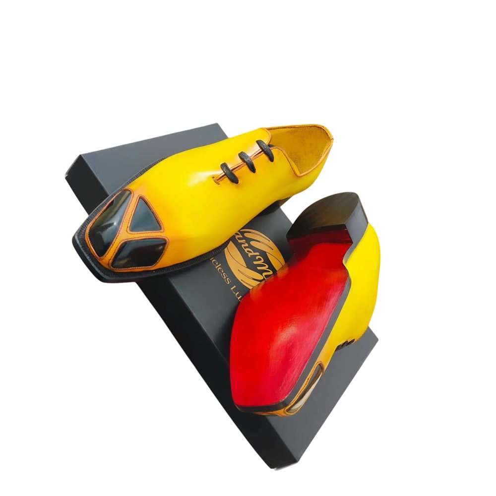 Be the first to review “Solare — Men’s Vibrant Yellow Patent Genuine Leather Wholecut Oxford Lace-Up Smart Casual Dress Shoes with Leather Sole”