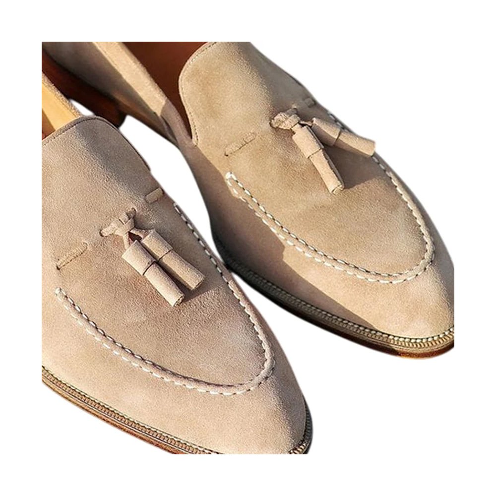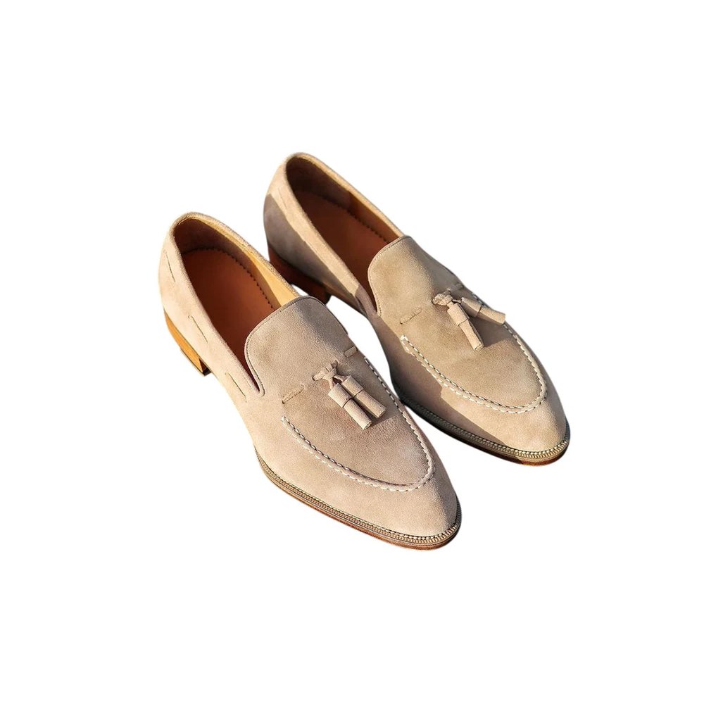 Panna — Men’s Cream Ivory Suede Tassel Slip-On Loafer Smart Casual Dress Shoes with Leather Sole