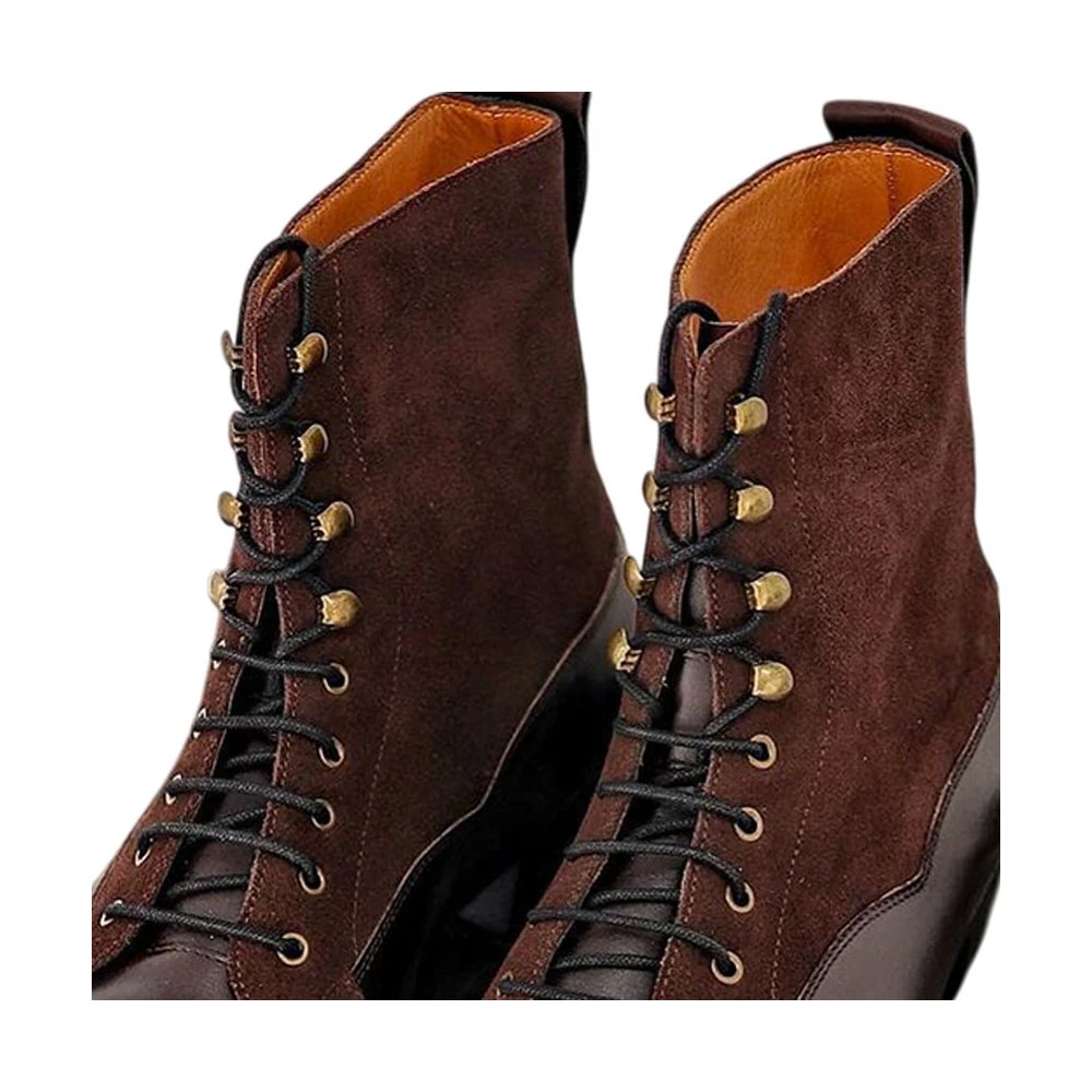 Be the first to review “Greyson — Men’s Dark Chocolate Brown Suede & Leather Cap-Toe Lace-Up Ankle Boots with Leather Sole”