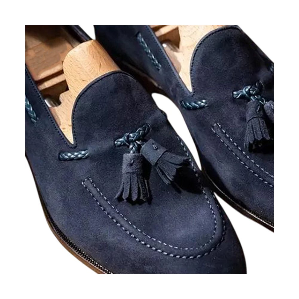 Sutton — Men’s Navy Blue Genuine Suede Tassel Loafer Slip-On Smart Casual Dress Shoes with Leather Sole