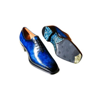 Azzurro — Men’s Royal Blue Patina Genuine Leather Wholecut Oxford Lace-Up Formal Dress Shoes with Leather Sole