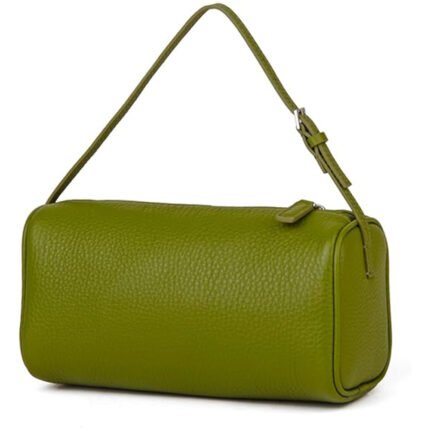 Vellona — Women’s Olive Green Pebbled Genuine Leather Cylinder-Barrel Single-Strap Silver-Hardware Minimalist Chic Shoulder Bag