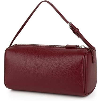 Vordella — Women’s Deep Burgundy Pebbled Genuine Leather Top-Zip Cylinder-Barrel Single-Strap Silver-Hardware Compact Elegant Shoulder Bag